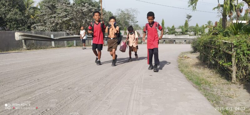 Sikka-Puluhan siswa-siswi lima desa di wilayah Kecamatan Talibura, Kabupaten Sikka terpaksa dipulangkan karena dikepung material vulkanis dari letusan Lewotobi Laki-laki, Sabtu, 2 Agustus 2025.